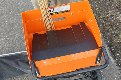 細かい枝木などを一気に粉砕できるホッパーを搭載、枝の剪定などででるゴミを大幅にコンパクトにできます。