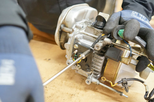 オイルレベルセンサーはエンジンの底面にあり、エンジンオイル量の異常を知らせてくれる重要なパーツです。エンジンオイルの管理が悪いとスラッジ等により故障を起こしたり、オーリングの経年劣化でオイル漏れを起こしたりします。交換にはエンジンにアクセスするため、外装カバー・ファンカバーと外さなくてはなりません。