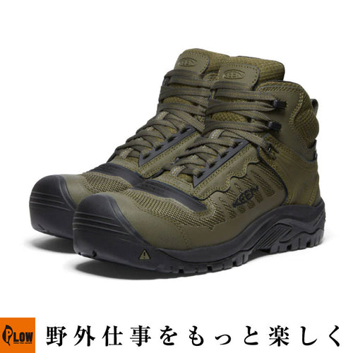 防水性×機能性にミッドの安全性をプラス《KEEN.DRY》やウォータープルーフレザーアッパーを採用した防水性に、屈曲性を高める《KEEN.BELLOWS FLEX》テクノロジーや高いエネルギーを還元する《KEEN.ReGEN》ミッドソールなどの機能性が融合したモデルのミッドカット。ローカットに比べて足首のサポート力がアップし、《CARBON-FIBER SAFETY TOE》によるつま先の安全性も高い。