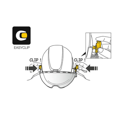 シールド『バイザー』は、飛散物による危険から目を保護します。「イージークリップ」システムにより、ヘルメット『バーテックス』(2019年モデル)、『ストラト』に簡単に取り付けできます。また、耐擦傷性と防曇性を高めるコーティングが施されています。。