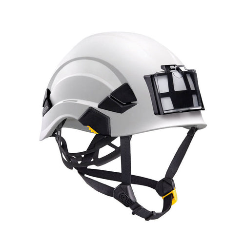 ヘルメット『バーテックス』『ストラト』用の ID カードホルダーです。簡単に取り付けることができ、名刺等の ID カードを雨から保護します。