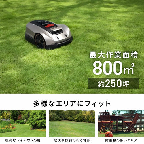 最大800m²(約250坪)の小規模の芝生に最適なX3は、コンパクトながらもパワフルなロボット芝刈り機です。
