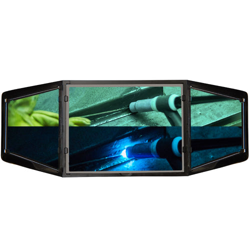 - 眩しさを軽減し鮮明な視界を保つ液晶”ブルーフィルタ”は接地面や溶融池の境目が見やすく、高出力溶接でもその能力を発揮する