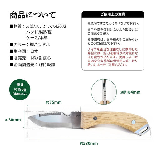 剣謙心 アウトドアナイフ刃II 樫ハンドル【19150009】