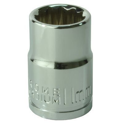 差込角3/8DR(9.5sq)でミリサイズのスタンダードソケットです。ボルトやナットを傷めづらい、面接触タイプです。角数が12PTなので、ボルトナットへのアクセスが容易です。