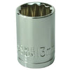 差込角3/8DR(9.5sq)でミリサイズのスタンダードソケットです。ボルトやナットを傷めづらい、面接触タイプです。角数が12PTなので、ボルトナットへのアクセスが容易です。