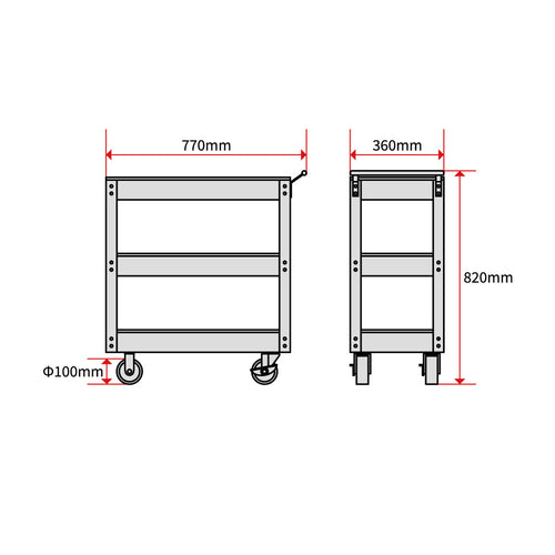 | 本体サイズ | W770×D360×H820mm(ハンドル、キャスター含む) |