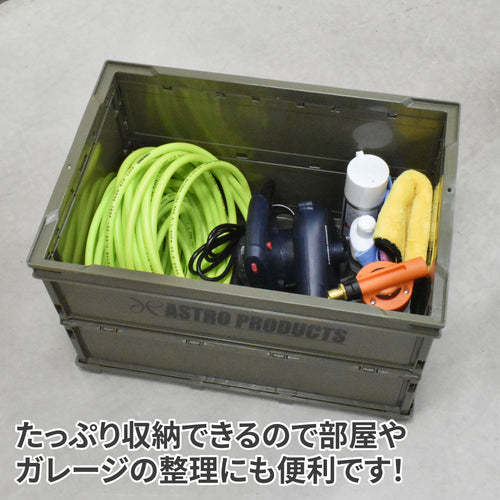 屋内・ガレージ内での荷物の整理、バーベキューやキャンプの荷物運び等にもおすすめな、折りたたみコンテナです。