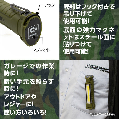 ミリタリーカラーがかっこいい、充電式のLEDライトです。