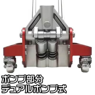 2つのポンプピストンで、少ないストロークでアームを上げることができます。