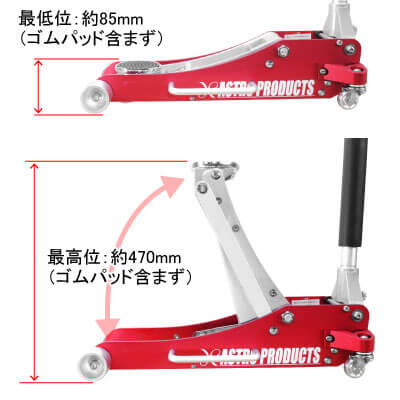 ※本製品で車輌を長時間保持することはできません。ジャッキアップを終えたら、速やかにリジットラックを車輌に掛けてください。