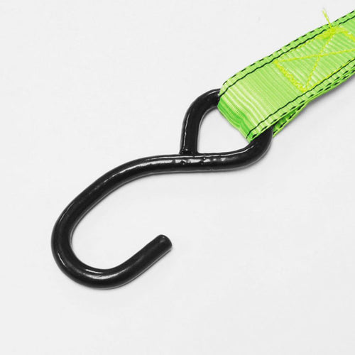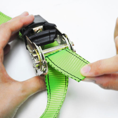 二輪車の積載や荷物の固定などに使用する、ラチェット式のタイダウンベルトです。