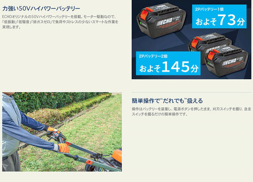 | 連続作動時間(min) | 2Pバッテリー2個:約145 2Pバッテリー1個:約73 |