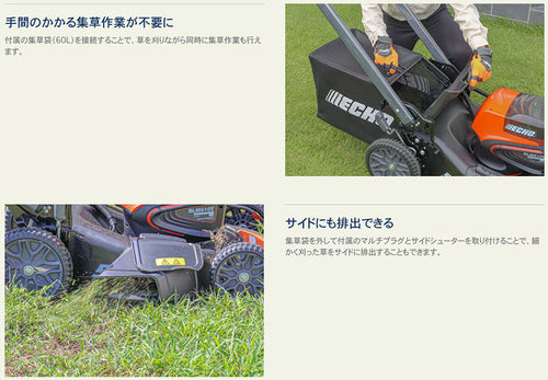 | 付属品 | 集草袋・マルチプラグ・サイドシューター |