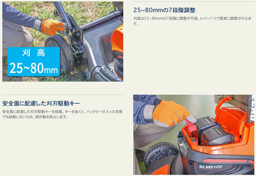 ※「連続作動時間」は満充電からの無負荷・自走運転時の作動時間です。使用状況や使用方法によって変動します。 (本体乾燥質量は、ISO11806に基づきバッテリー、集草袋、マルチプラグ・サイドシューターを含みません) |