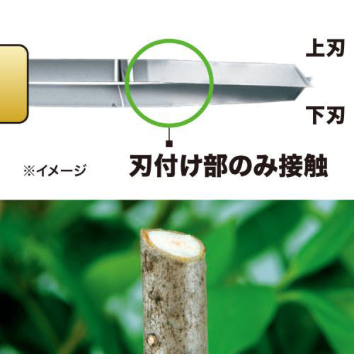 刃付け角度の鋭角化と精密な刃先合わせで鋭い切れ味の「偏角拝み刃」形状。三面研磨、高剛性ガイドバー採用。特殊コーティングでヤニが付きにくく、サビにくい。