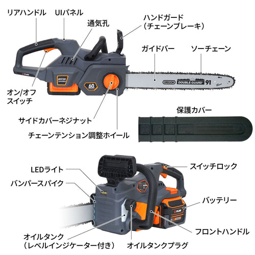 | 付属品 | ソーチェーン、ガイドバー、保護カバー |