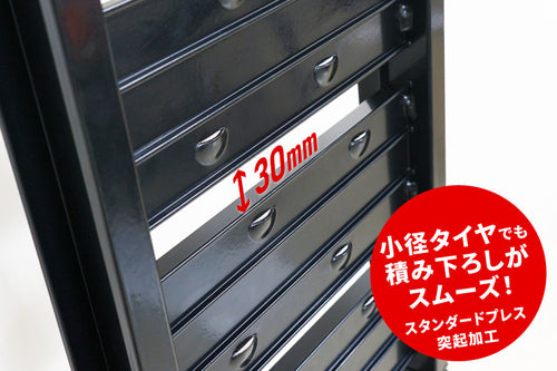 ※スレ落ち防止の爪がありますが、安全のためタイダウンベルトで、積載車に本体を固定してから使用してください。