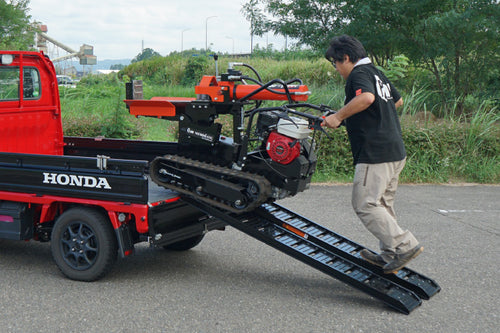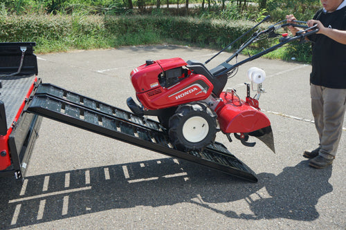アルミラダーは農業機械や二輪車などを軽トラや積載車へ載せたり、降ろしたりすることができます。