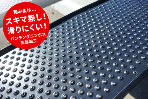 アルミ製でスチールより軽く、折り畳み式で保管や積載時でも場所を取りません。