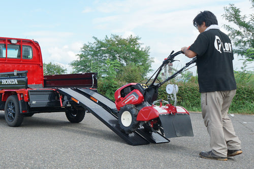 アルミラダーは農業機械や二輪車などを軽トラや積載車へ載せたり、降ろしたりすることができます。
