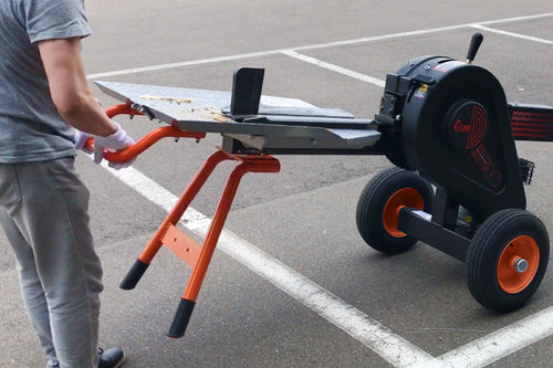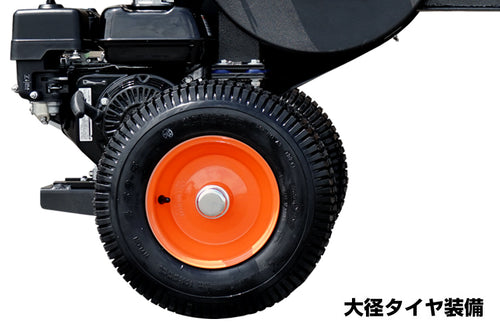 薪割り機としては大き目の大径タイヤを装備。多少の悪路なら難なく移動することができます。