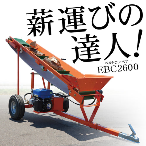 割った薪や木材などを運搬車やパレットなどに移すのに最適なプラウのベルトコンベアー/EBC2600のご紹介です。シングルタイプのEBC2600はヤマハエンジン搭載で高い出力を誇り運搬作業を円滑に行えます。大径タイヤを装備したことにより目的地までの移動が容易になりました。角度調節機能が備わっていますので作業環境にあわせた任意の角度調節が行え円滑に作業を行えます。安全面では荷物の後退や落下を低減させる安全弁を装備しました。より快適に運搬作業を行えるベルトコンベアーをプラウはご提案します。