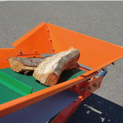 薪を割った後に直接転がしたり滑らしたりすることでベルトコンベアーに搬送されます。流れ作業が行え円滑に作業が行えます。