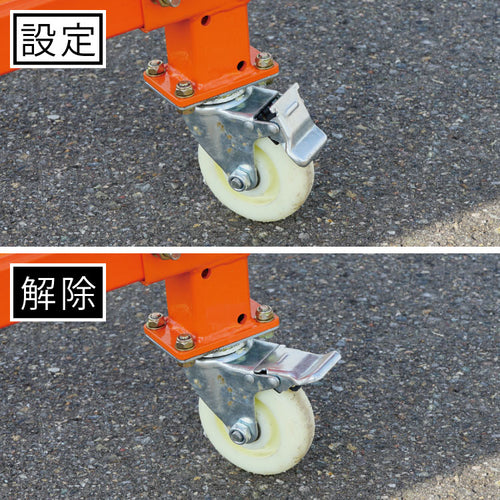 安全に作業を行うためのストッパーを装備しました。作業時の振動や傾斜地での意図しない移動を防ぎます。ストッパーの設定と解除はペダル操作で簡単に行なえます。