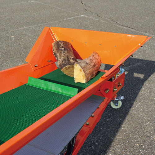 薪を割った後に直接転がしたり滑らしたりすることでベルトコンベアーに搬送されます。流れ作業が行え円滑に作業が行えます。
