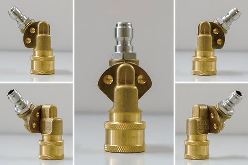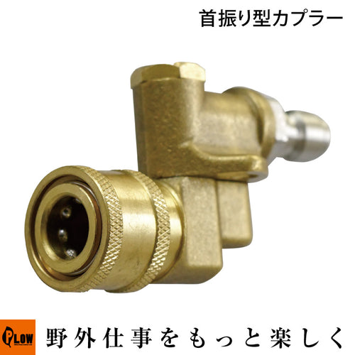 角度を変えられるのでガンが届かない場所や体に負担のかからない姿勢に適した首振り型カプラー。取付もワンタッチで行えるので脱着も楽に行えます。