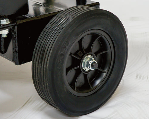 タイヤのパンクトラブルがなくなりました。耐久性の高い100%ゴムタイヤ使用することで移動がスムーズに行えるようになり、タイヤの変型も減少しました。