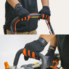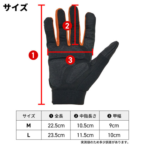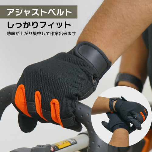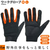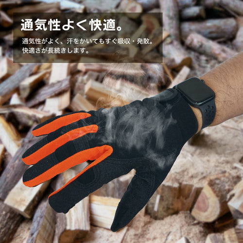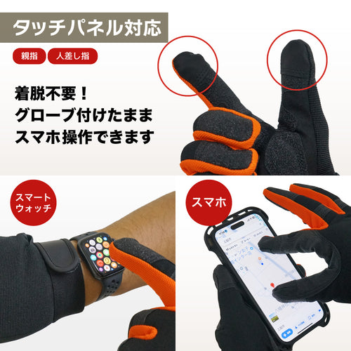 親指と人差し指の先はタッチパネルに対応していて、着脱不要でスマホの操作が可能です。作業中の不意な連絡にもグローブをはめたままスマホの対応ができます。