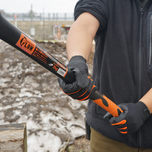 広範囲に採用した耐摩耗素材はグリップ力があり薪割り斧との相性は抜群。