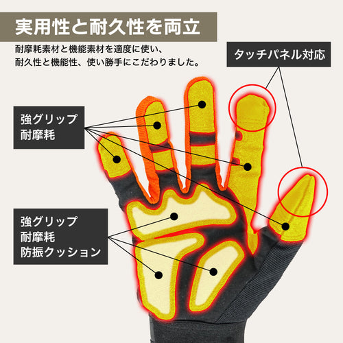 耐摩耗性・通気性に優れ、防振効果もあるプラウの作業用グローブ。