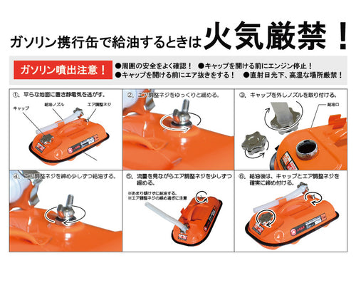 草刈り機・発電機・チェーンソーなどを購入する方は、必ず必要な携行缶です。