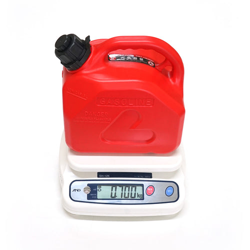 高密度ポリエチレン製のGTP5は重量はわずか0.7kg、金属製のガソリン携行缶の約半分の重さ。軽いので持ち運びや燃料タンクにそそぐ際のにも便利です。