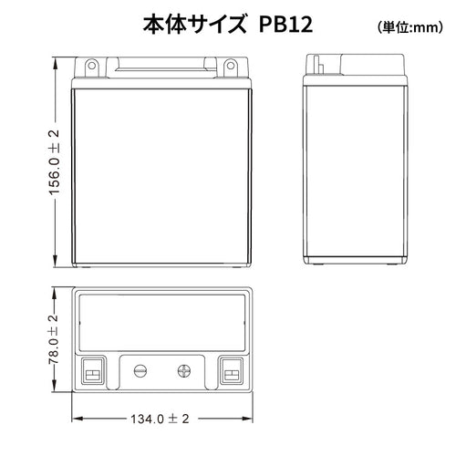 | 寸法(mm) | 長さ 134±2mm 幅 78±2mm 高さ 156±2mm(端子含む) |