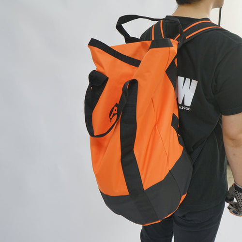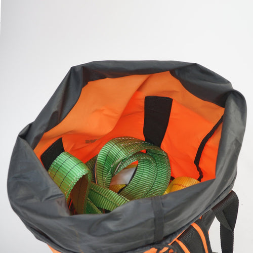 大容量でびっくりするくらいたくさん入るロープバッグがPLOWから新登場。ウインチ用ロープはもちろん、いろんな用途でお使いいただけます。クッション付き背負いバンドがついているので重量のあるロープや薪、工具などの収納バッグにもお使いいただけます。生地は若干柔らかめのため自立はしませんが、その分、バッグ自体の重量は軽く扱いやすい生地を使用。
