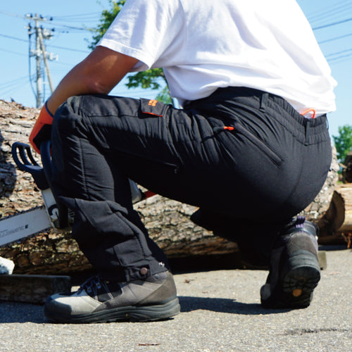 2019年8月1日からチェンソー防護ズボンの着用義務化が公布されました。チェンソーを扱ううえでより安全な防護ズボンが要求されています。プラウの防護ズボンは快適に作業を行っていただくための機能を多数装備しました。また、普段着として着用していただけるように、お店などに立ち寄っても違和感がないシンプルなデザインになっています。