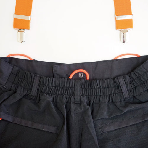 サスペンダーの留め具を装備。ずり落ちやベルトの圧迫が気になる方はサスペンダーでの着用がオススメです。※本製品にはサスペンダーは付属しておりません。