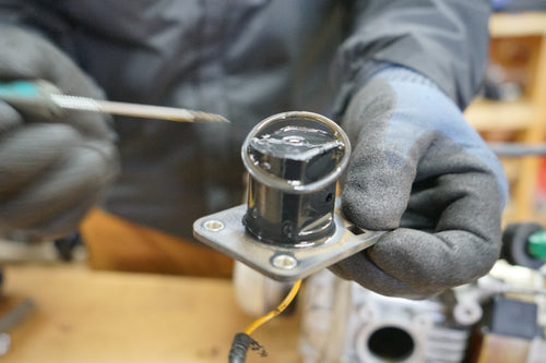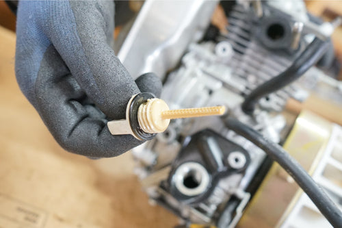 エンジン底部にあるオイルレベルセンサーのOリングも交換します。この部品は劣化すると漏れやすいですが、エンジンの外側から取り外しできるので、交換難易度は他部品と同程度。
