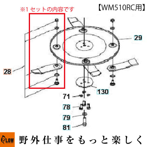 ゼノア ラジコン草刈機 WM510RC用替刃ブレードセットです。