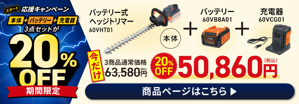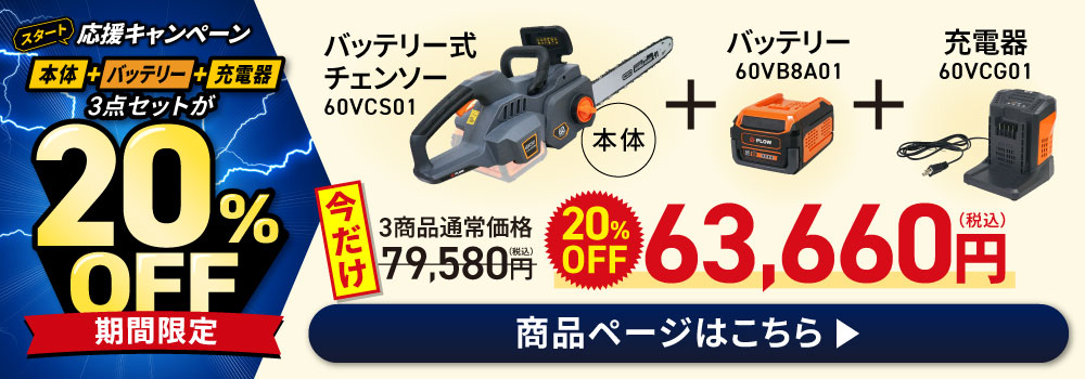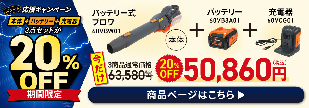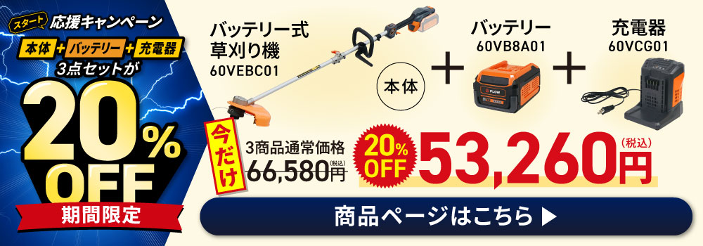【本体】+【バッテリー】+【充電器】の3点セットが20%OFFになる「スタート応援キャンペーン」実施中!