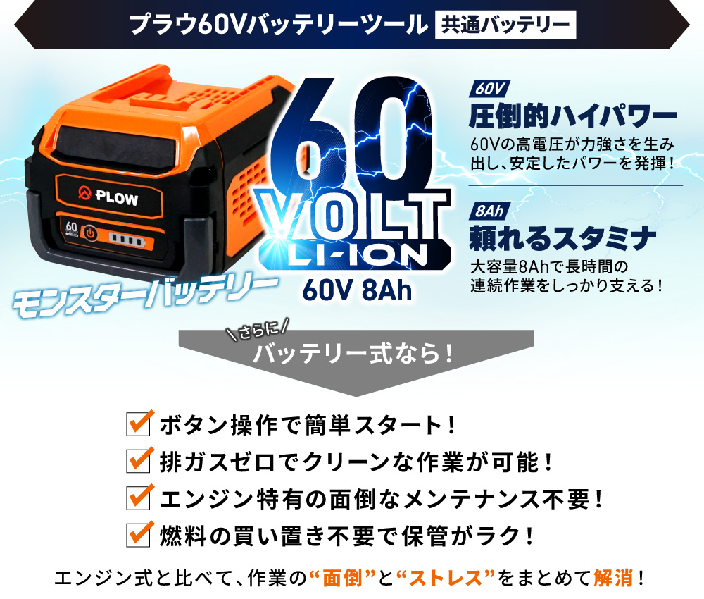 60Vモンスターバッテリーを中心に、プロ用と遜色無いパワーツールをロープライスでラインナップしています。