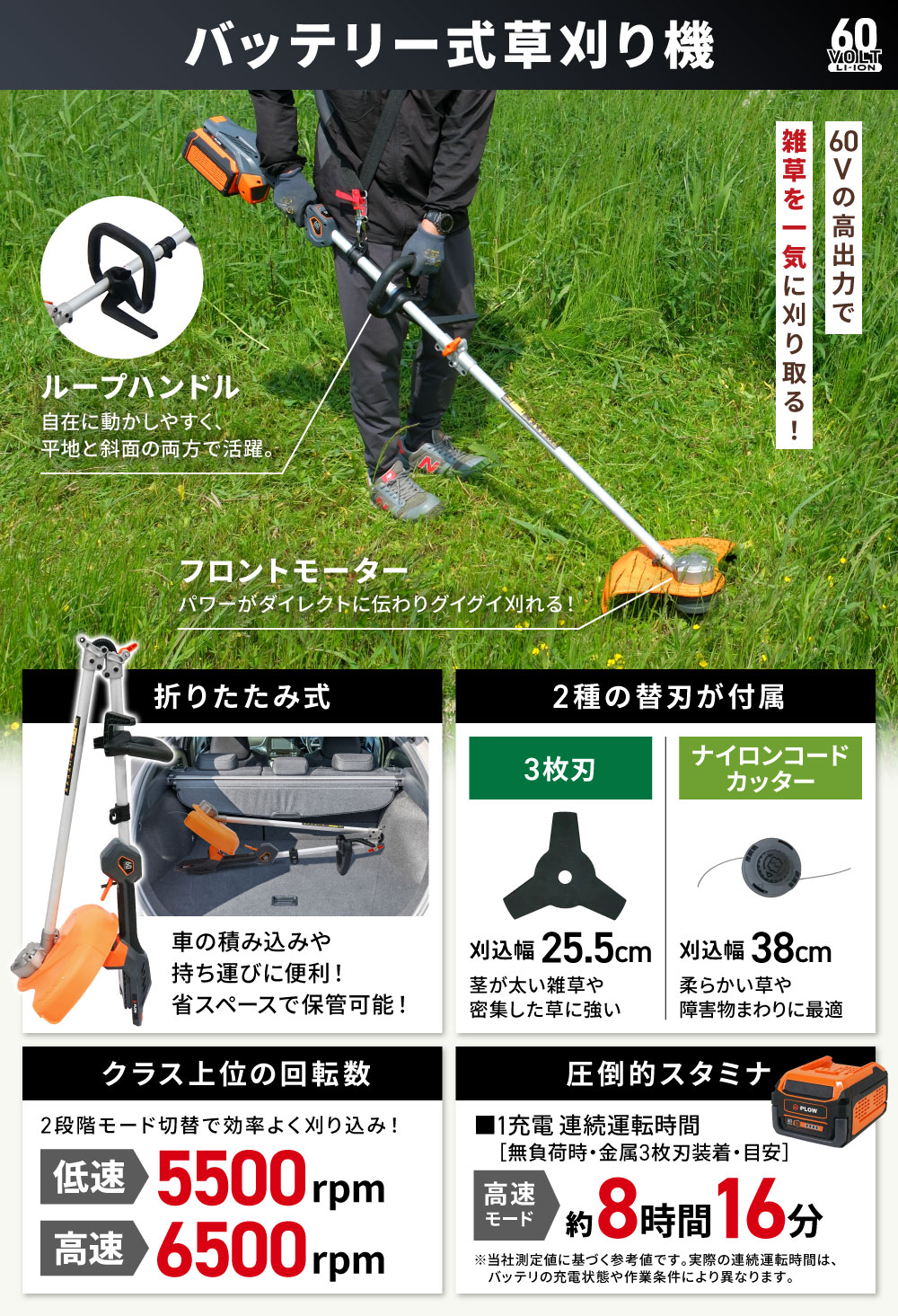 バッテリー式草刈り機 60VEBC01|家庭用最高クラスの切断力