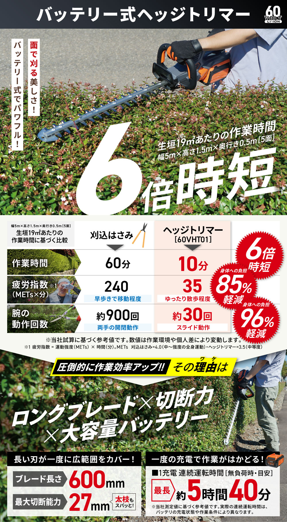 バッテリー式ヘッジトリマー 60VHT01|600mmロングブレード