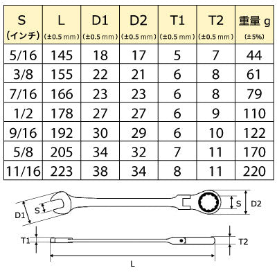 ・入組みサイズ:5/16、3/8、7/16、1/2、9/16、5/8、11/16インチ