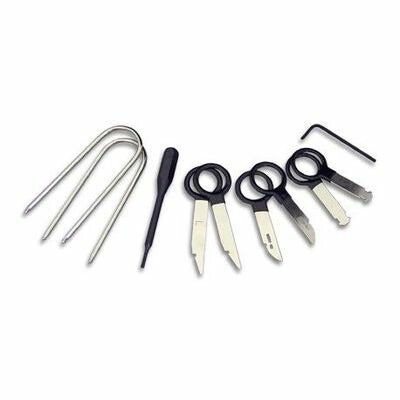 欧州車等の純正オーディオはネジなどで固定されているのでは無く、パネル部に金具等でロック固定されているので、それらのロックを解除するための専用工具です。