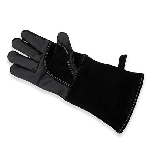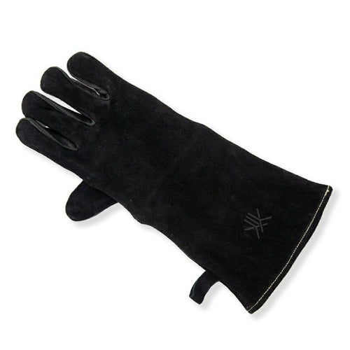 熱が加わっても硬くなりにくい牛革を採用した、 革が柔らかく手にフィットして薪をつかみやすいストーブグローブです。 手の平側は生地を二重にし、耐久性を高めました。 マットな光沢と起毛面の組み合わせにより、黒一色の中にもツートンのニュアンスがあります。 通常の一双に加え、片手のみもラインナップしています。